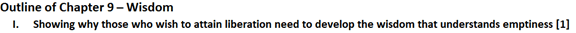 It is useful to re-examine each of our method practices from the perspective of how it helps us to realize emptiness.  The method practices help us create the mental environment for realizing emptiness.  By seeing the connection between wisdom and our method practices, we will understand the deep meaning of the method practices.  All of our method practices are made more powerful when they are conjoined with an understanding of emptiness.   For example, dedication.  If things existed outside of the mind, our dedication is useless.  But because things are coming from our mind, our dedications can and have worked miracles.