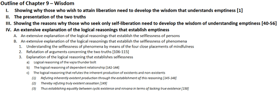 Shantideva is telling us we have no fixed identity. We have no identity, so we need to stop believing we have one. We ourselves are empty. Our samsara is empty. Nirvana too is empty. Therefore, we can come to abide in nirvana. Because we ourselves, samsara and nirvana all lack true existence, we can change from a being abiding in samsara to a being abiding in nirvana. Wonderful!
