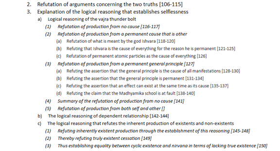 The table for example is a thing. According to Madhyamika-Prasangikas, there is no-thing that is the table. There is nothing that is the table. Madhyamika-Prasangikas are proponents of no thing. Unlike us, proponents of things believe that there exists something that is a table. There can be found something that is table. Different schools believe it is a different thing that is the table. The Prasangikas refute all of these views.